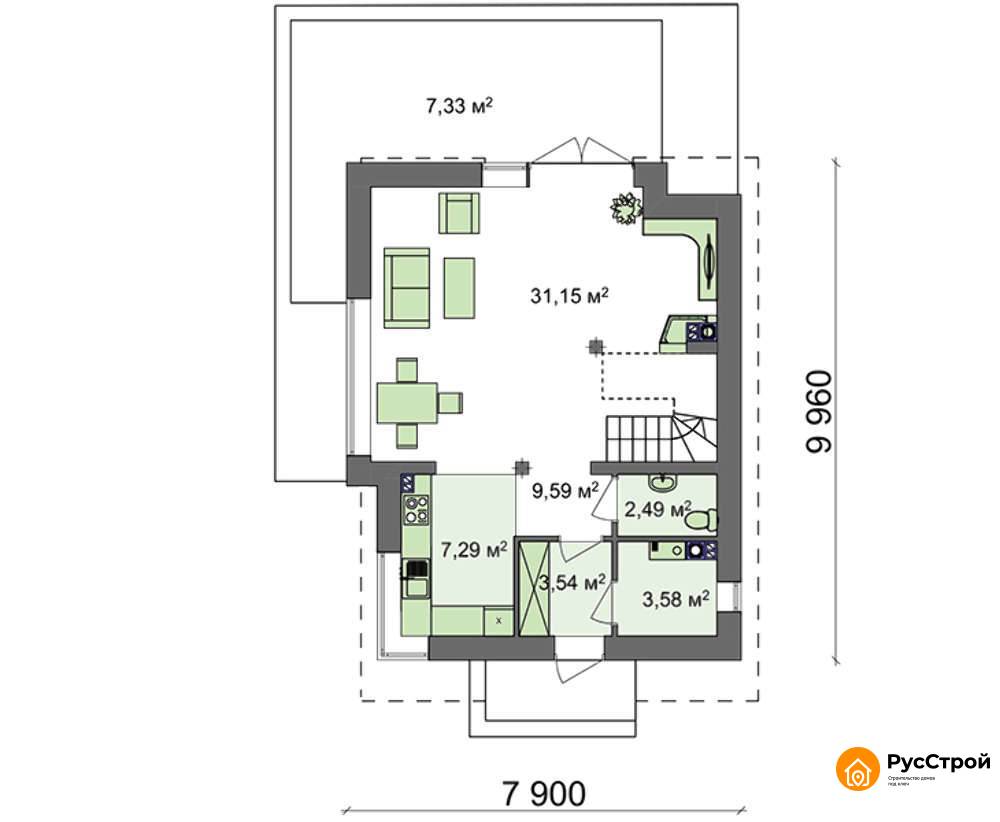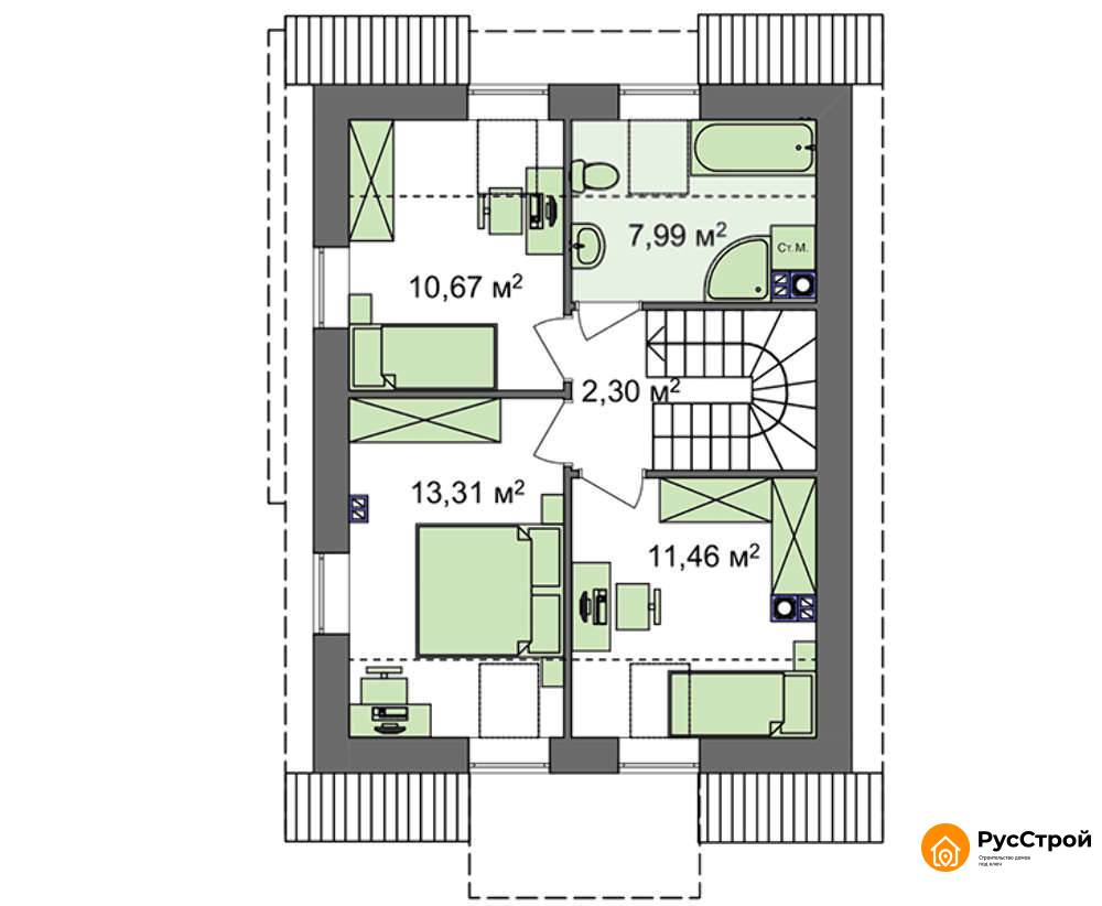 Двухэтажный коттедж с 3-мя спальнями для узкого участка SD-148
